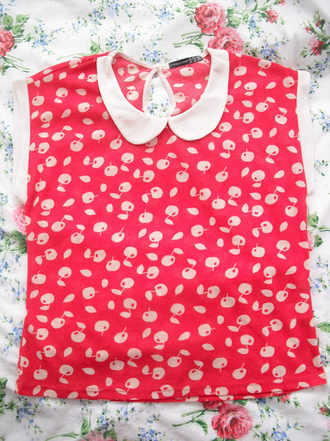 This cherry print peter pan tshirt was reduced from £6 to only £3, I thought it would look nice with skinny smart jeans.